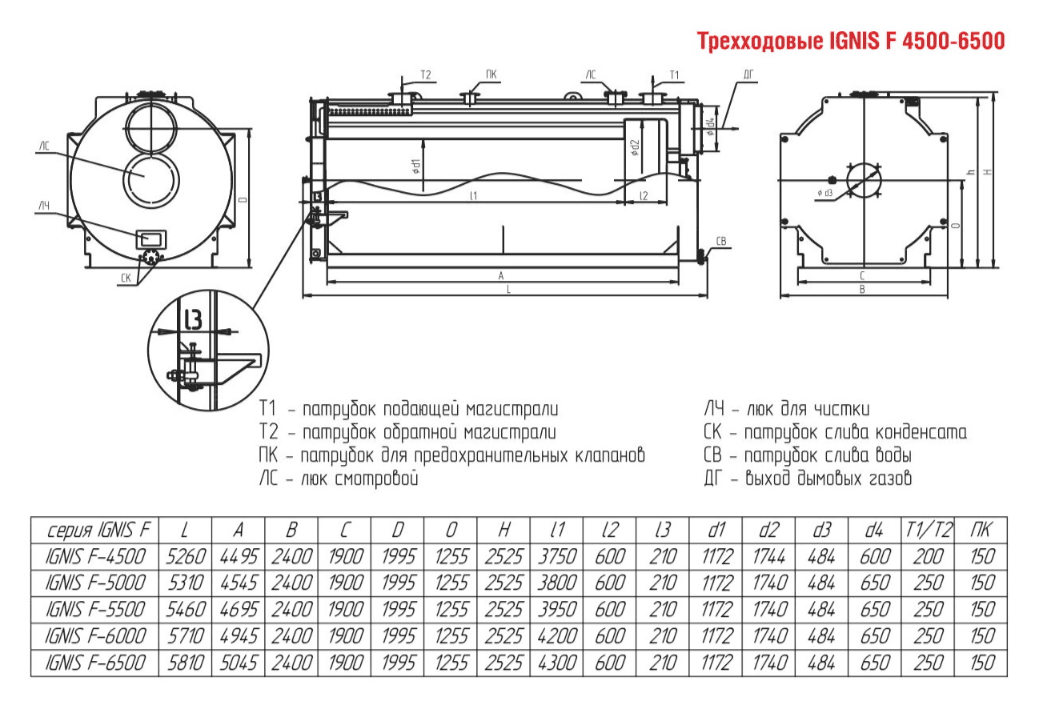Технические характеристики водогрейного трёхходового котла ARCUS IGNIS F-4500