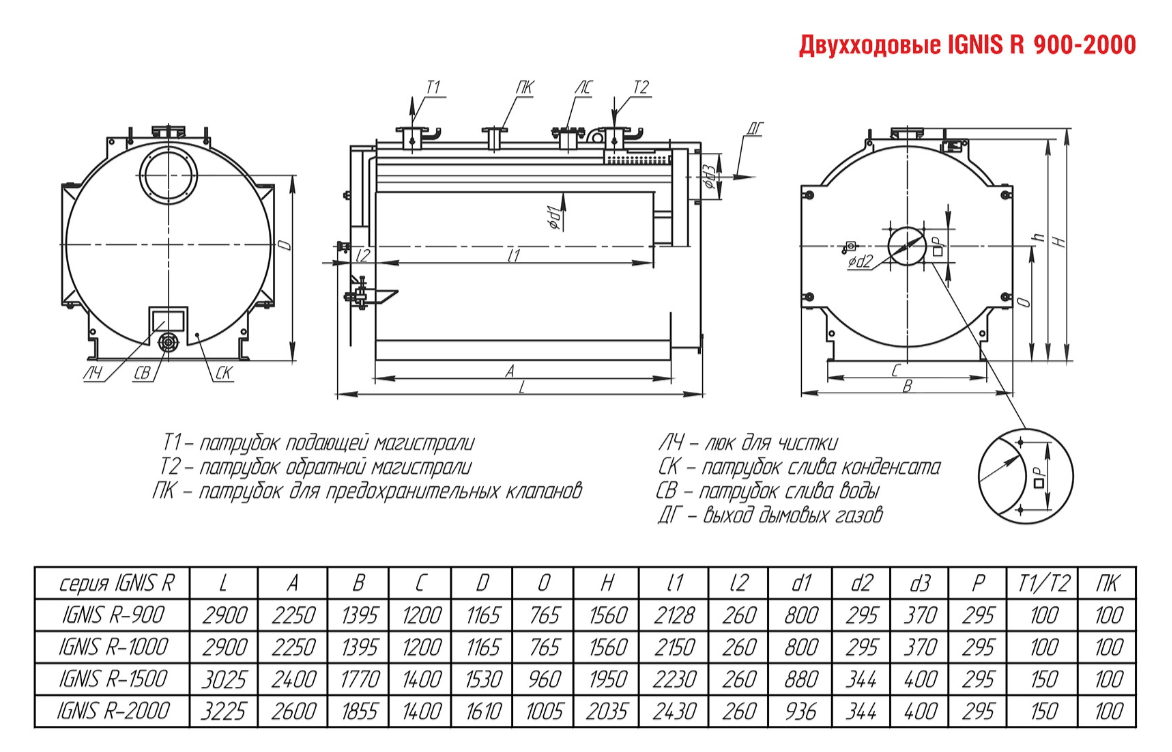 Технические характеристики водогрейного двухходового котла ARCUS IGNIS R-1000